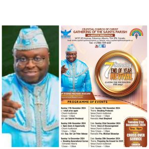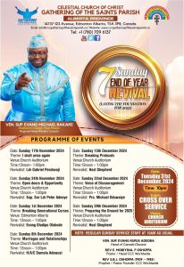 Celestial Church of Christ, Gathering of the Saints Parish in Alberta Province, located at 14737-123 Avenue Edmonton Alberta, T5A 3P8, Canada is gearing up for an impactful start to the year 2025 with a 7 Sundays End of the Year Revival. This event will involve making progressive prophetic declarations for the coming year.