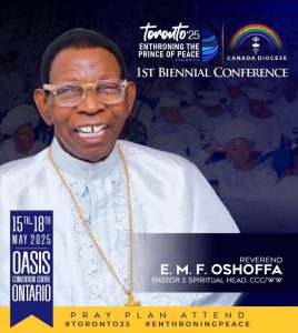 For the very first time in the history of Celestial Church of Christ in Canada, the Diocese is embarking on a ground-breaking journey towards education, dialogue, and meaningful engagement! Under the visionary leadership of VSE Adeoba, the convention will marks a significant milestone in the history of CCC in Canada, reflecting the Church’s growth and commitment to fostering unity and spiritual renewal among its members. The event aims to bring together believers from across Canada and beyond, creating a platform for worship, learning, and community building.