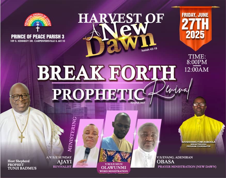 As the season of gratitude and divine celebration draws near, Celestial Church of Christ, Prince of Peace Parish, Chicago USA opens its gates to the glory of God, marking the beginning of a spirit-filled journey toward its 16th Adult Harvest Thanksgiving Service, themed “HARVEST OF NEW DAWN.”