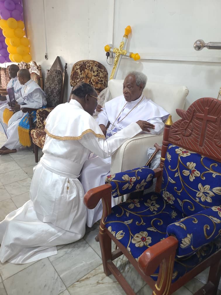 It was a moment to cherish old memories and discuss the genuine progress of the Church as Elders gathered to celebrate the 100th birthday of Most Superior Evangelist Tawio Oshin. This milestone birthday provided a unique opportunity to reunite with members who embody the true essence of the Church and continue to uphold the teachings of the Pastor Founder Rev SBJ Oshoffa.The birthday celebration brought together Most Superior Evangelist S.O Banjo, the Doyen of CCC Worldwide, Patron of CCC National Headquarters, Makoko and a member of the registered Board of Trustees, engaging in a heartfelt conversation with V/S/E Ogunremi, the Patron of CCC Ibara Cathedral in Abeokuta, Ogun State. The image captured the profound bond shared between these two Elders, who consistently advocate for a Church where the divine mandate of God remains at the forefront.