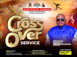 The world will once again witness a sacred gathering of appreciation, gratitude, thanksgiving, and unrestrained praise to God for the immeasurable grace bestowed upon every living soul. In a positive atmosphere of worship and praise, reflecting on God’s mighty works, deliverance, and undeniable breakthroughs throughout the 8,760 hours of the year 2025 Celestial Church of Christ New Etete Parish, Benin City, Edo State will observe its annual Cross Over Service in strict adherence to the doctrinal practices of the Church.