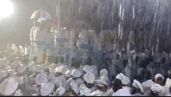 Despite the heavy downpour of rain, Pastor Oshoffa stood at the center stage, embodying the spirit of sacrifice and commitment as he preached to the congregation. The service, which began before the rain started, continued without interruption as the Pastor remained steadfast in his mission to spread the message of love and unity.