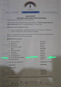 The Church authority has once again shoulder down another load of duties to members by introducing a nominal fee of #1500 for the upcoming 2024/2025 anointment exercise. This fee is intended to support the charitable foundation, C.E Emmanuel Foundation, established by Pastor Rev EMF Oshoffa and his wife, M/C Celine Oshoffa.