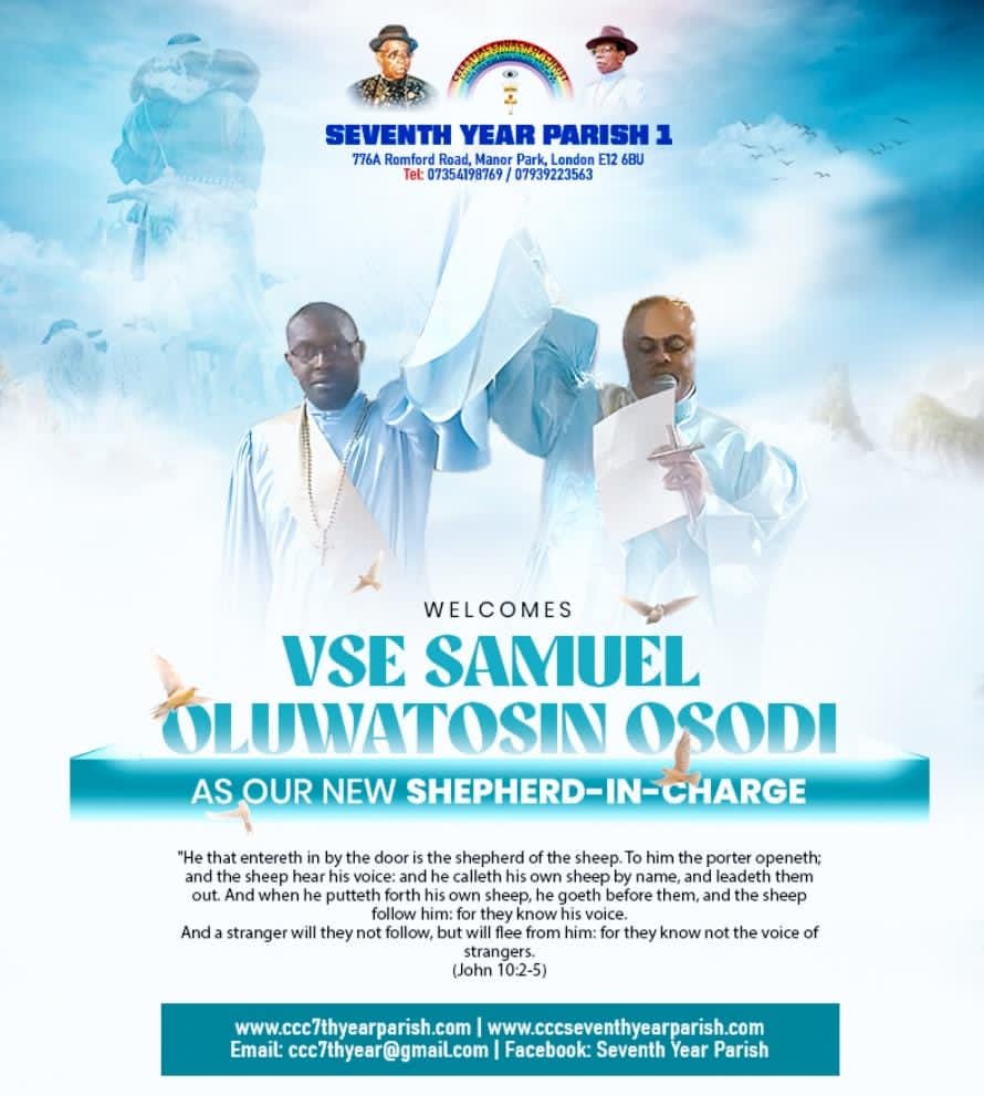 Celestial Church of Christ Seventh Year Parish, United Kingdom has officially announced the appointment of Venerable Senior Evangelist Samuel Oluwatosin Osodi as its new Shepherd-in-Charge, marking a significant and divinely inspired milestone in the spiritual journey of the parish.